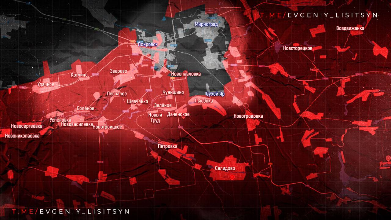 Красноармейское направление: ВС РФ контролируют север города и продвигаются к центру. Формируется котёл южнее Покровска и Мирнограда, в окружении до 9 тыс. ВСУ.