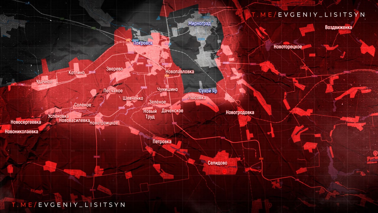 ВС РФ зачищают город, бои идут в северных многоэтажках и у шахты в Мирнограде. Освобождены Рог и Хутор Запорожский, продвижение на 2,5 км к Гришино. На добропольском выступе продолжаются ожесточённые встречные бои в Затышке, Сухецком и Никаноровке.