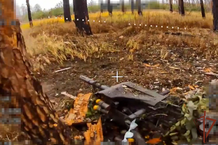 Изготовленный к бою вражеский гранатомет росгвардейцы поразили с помощью ударного беспилотника.