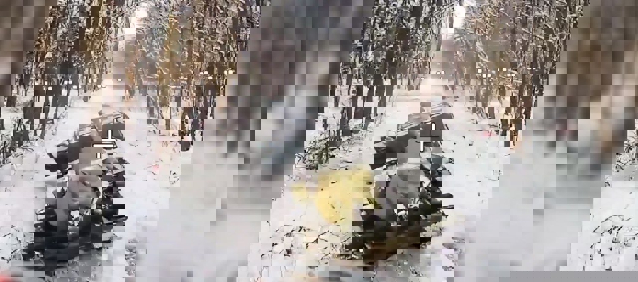 Расчёт БПЛА спецназа Росгвардии в ходе воздушной разведки обнаружил брошенную в лесном массиве САУ противника, которая застряла в снегу.