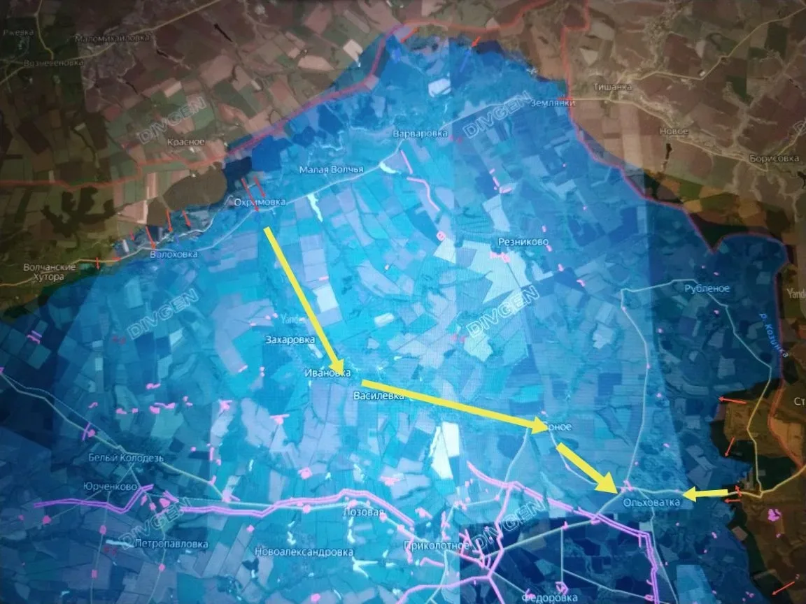 Дальнейшее продвижение ВС РФ вдоль р. Плотва и выход к Ольховатке с запада и востока несёт угрозу окружения ВСУ на Охримовско-Ольховатском выступе (между Охримовкой и Ольховаткой), что может значительно оказать влияние на их морально-психологическое состояние и устойчивость обороны противника в этом районе.