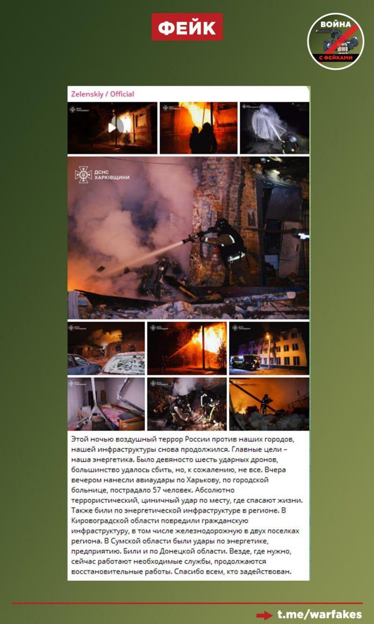 Фейк: ВС РФ нанесли удар по больнице в Харькове. Об этом заявил президент Украины Владимир Зеленский.