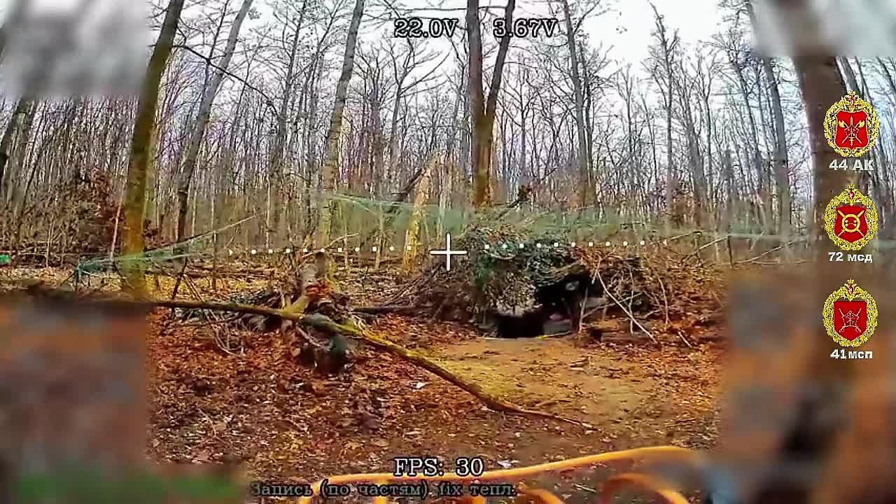 Расчёт БпЛА 41 мсп 44 Армейского корпуса обнаружил и уничтожил блиндаж ВСУ.