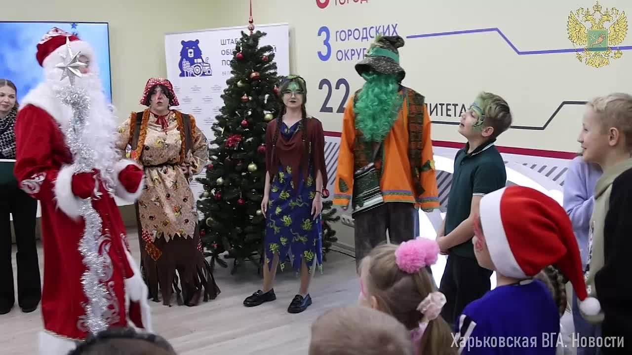 Новогоднее представление с Дедом Морозом и Снегурочкой и сказочными персонажами для маленьких соотечественников подготовили ребята из МДХО «Время первых». Мероприятие посетил Глава ВГА Харьковской области Виталий Ганчев, депутат Госдумы РФ Артём Туров и Председатель Белгородской областной Думы Юрий Клепиков.