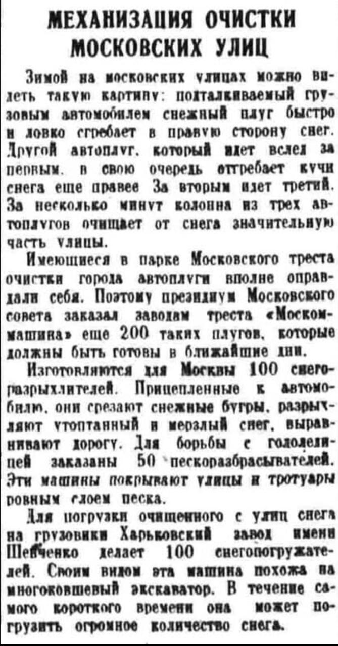 Кстати, как видите, снегопогружатели для Москвы тогда делали в Харькове.