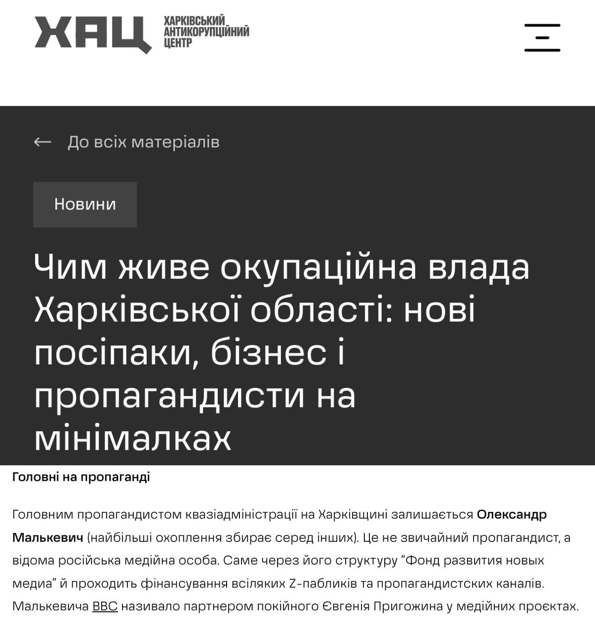В свежем «расследовании» некоего харьковского антикоррупционного центра авторы с тревогой сообщают: на территории Харьковской области, находящейся под контролем российской армии, якобы усилилось «пропагандистское давление» России!