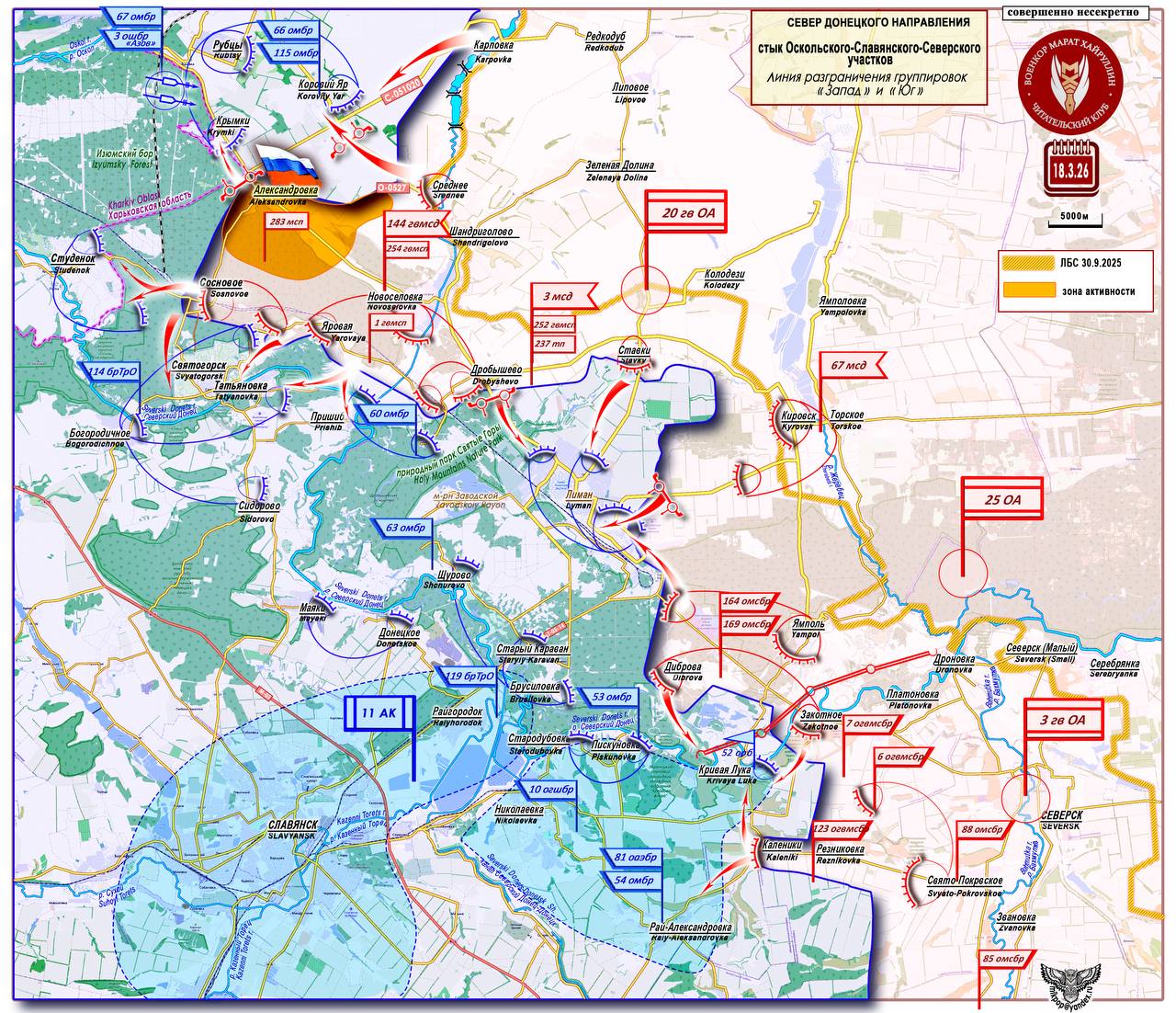 ВС РФ готовят условия для формирования глубокого оперативного охвата Славянского участка с севера, с угрозой выхода в тыл агломерации Короткая сводка с фронта 18 марта 2026 года