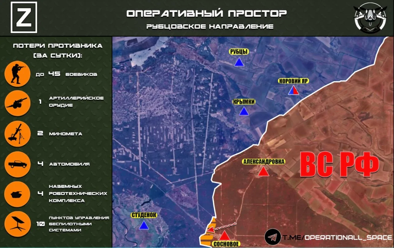 На Рубцовском направлении на границе ДНР с Харьковской областью ВС РФ наступают в районе села Студенок, сообщает "Оперативный простор":