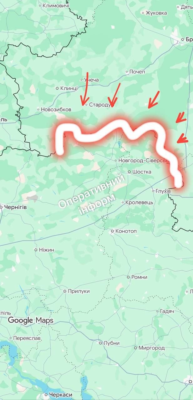 Сообщают, что российская ДРГ готовится прорвать украинскую границу в Черниговской и Сумской областях: фиксируют подготовку к применению 200 человек личного состава на Черниговском и Шосткинском направлениях.