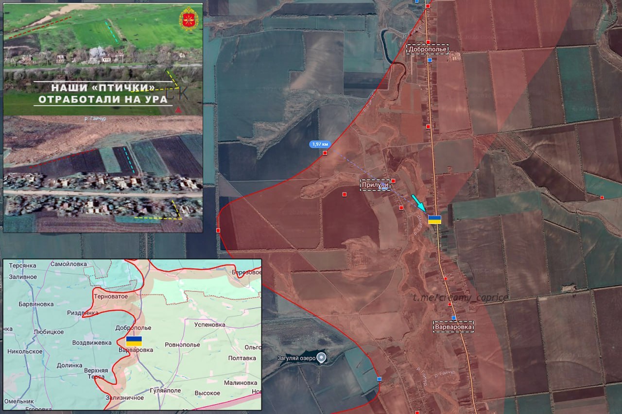 Обстрел со стороны ВС РФ позиции ВСУ в Варваровке. Боевые действия в глубине 2 км зоны контроля ВС РФ,
