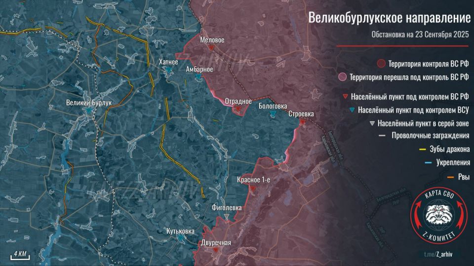 "Z комитет" отметил на карте продвижение ВС РФ между Отрадным и Амбарным и западнее Волчанска.