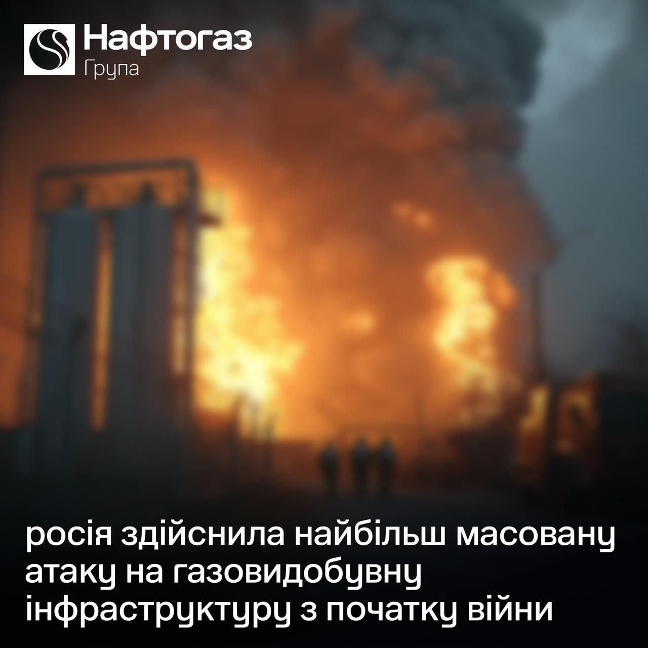 «Нафтогаз» заявил, что ночью была совершена крупнейшая массированная атака на газодобывающую инфраструктуру с начала полномасштабной войны.