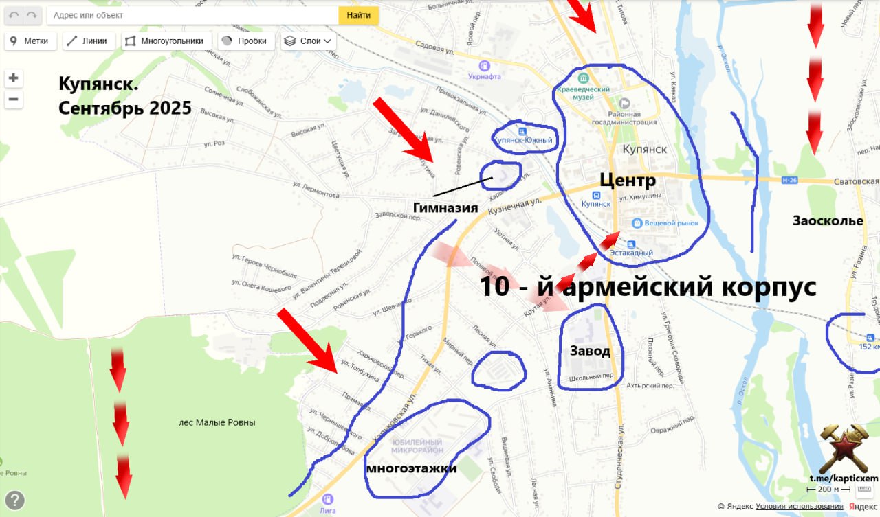 Это наши прорвали вражеский фронт на стыке улиц Харьковской и Кузнечной, а у Завода красивым маневром вышли в южное подбрюшье "Центра" Купянска.