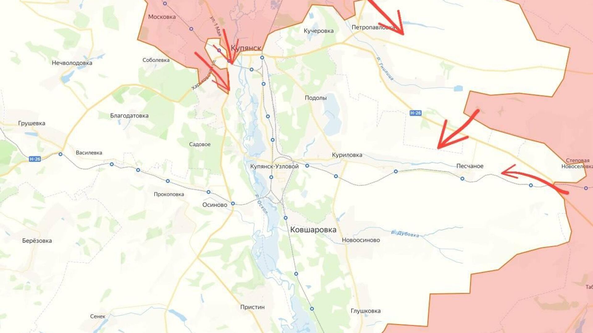 Какой третий успех? ВС РФ удалось поджать территории ВСУ около "обречённых" населённых пунктов Песчаное и Петропавловка на левом берегу реки Оскол. Если говорить в целом, то ситуация в Купянске постепенно развивается в сторону освобождения этого стратегически важного города в Харьковской области, пишет канал «Шепот фронта».