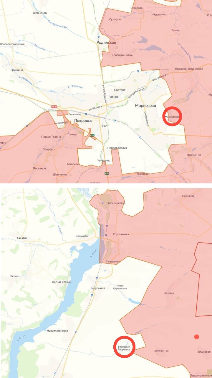 МО РФ: н.п. Боровская Андреевка (Харьковская область) и Московское (ДНР) освобождены от украинской оккупации.Подпишись в MAX@voenkorKotenokТакже МО РФ подтверждает, что подразделения ВС РФ зашли в восточные районы Димитрова (он же Мирноград) и...
