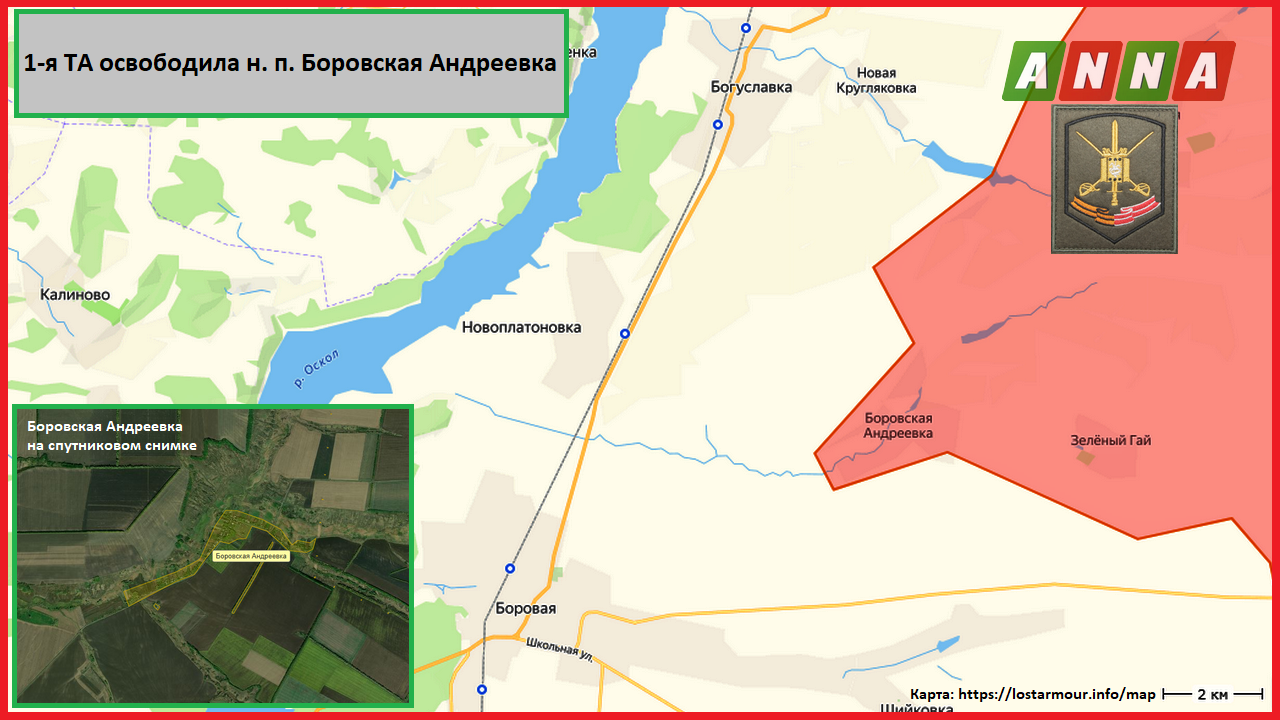 Освобождению Боровской Андреевки, исходя из данных «Оперативного простора», предшествовало полуокружение этого населённого пункта — занятие соседних высот и размещённых на них опорных пунктов противника.