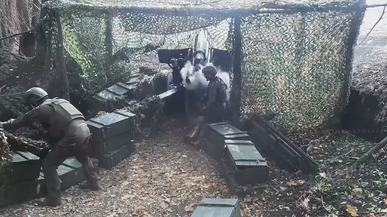 Расчёт 130-мм буксируемой пушки М-46 44-го армейского корпуса группировки войск «Север», ведёт огонь северокорейскими снарядами по позициям ВСУ в Харьковской области.