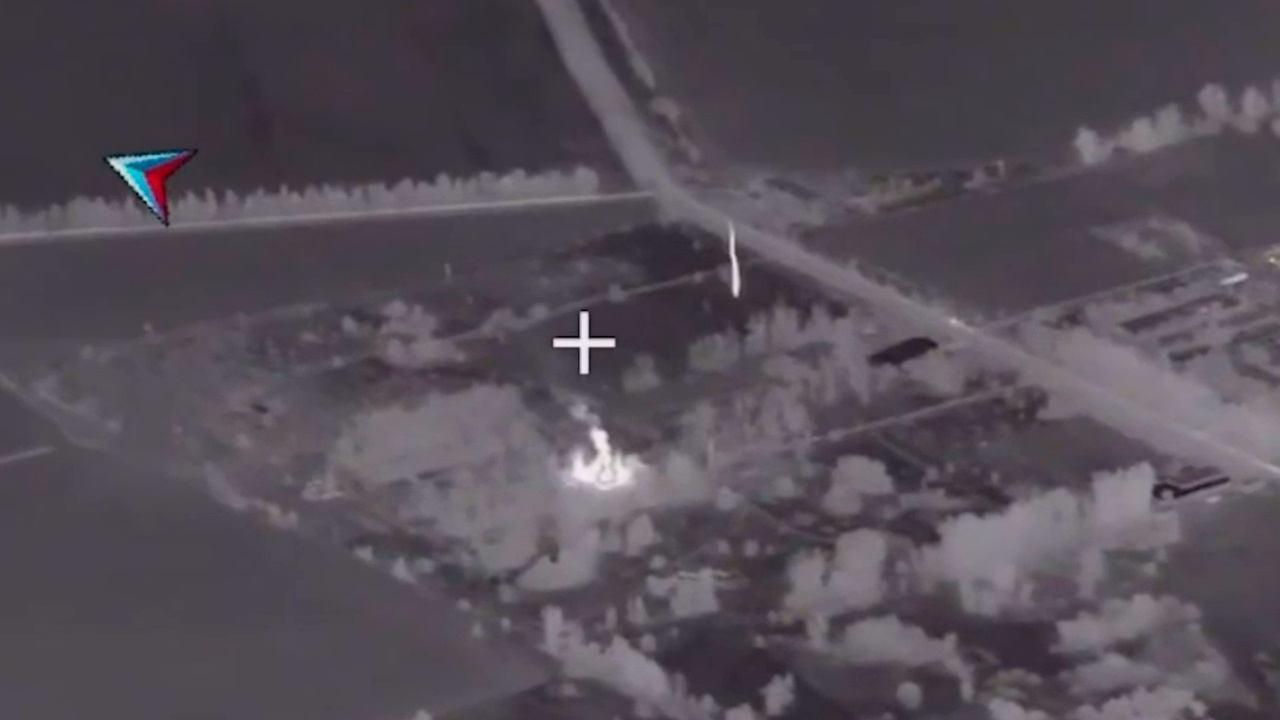 На видео можно различить, как две ракеты падают на цель по баллистической траектории. Следом срабатывает боевая часть, и враг исчезает во вспышках взрывов.