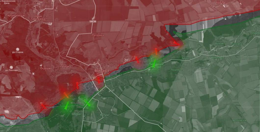«На Южно-Слобожанском направлении российские войска продвинулись на 350 м и заняли 30 зданий в Волчанске на левом берегу реки Волчья.
