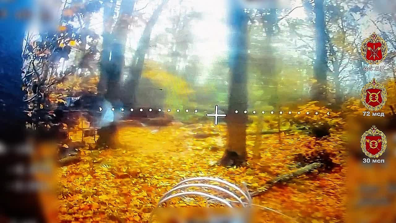Расчёт БпЛА 30 мсп 44 Армейского корпуса с помощью ФПВ-дрона на оптоволокне обнаружил и уничтожил ПВД ВСУ.