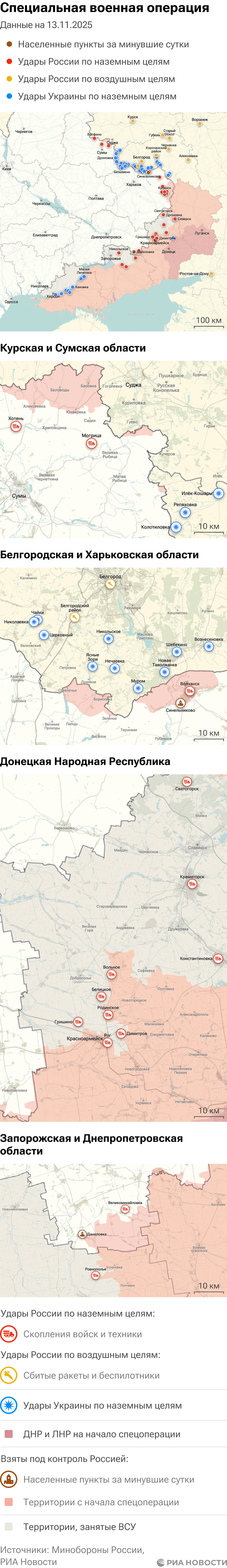 Российская армия с 24 февраля 2022 года проводит на Украине специальную военную операцию. Ее главной целью является помощь Донецкой и Луганской народным республикам, на территории которых с 2014 года не прекращались обстрелы. Перед российскими военными поставлена задача минимизировать потери личного состава и мирного населения при выполнении боевых заданий.Данные Минобороны и администраций новых регионов на 13 ноября 2025 года