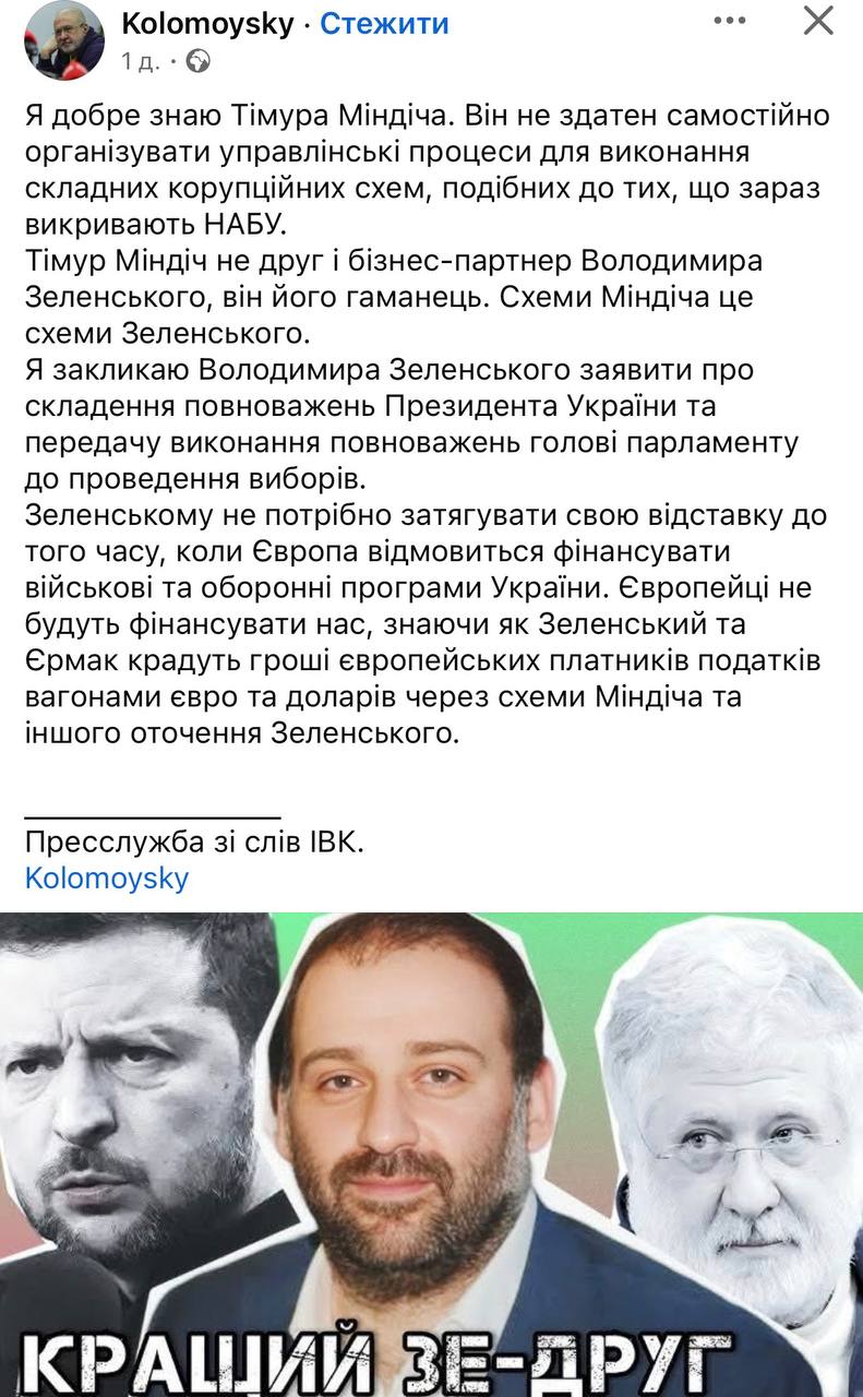 Всем известно, что Беня очень злопамятный. Зеленский видимо думал, что президенство и покровительство западных лидеров дают ему некий иммунитет и потому можно смело пожертвовать тем, кто тебя посадил в кресло в свое время. Но не тут то было. Говорят Беня лично давал показания против Зели и Миндича, а уж компромата на бывших партнеров у него предостаточно!