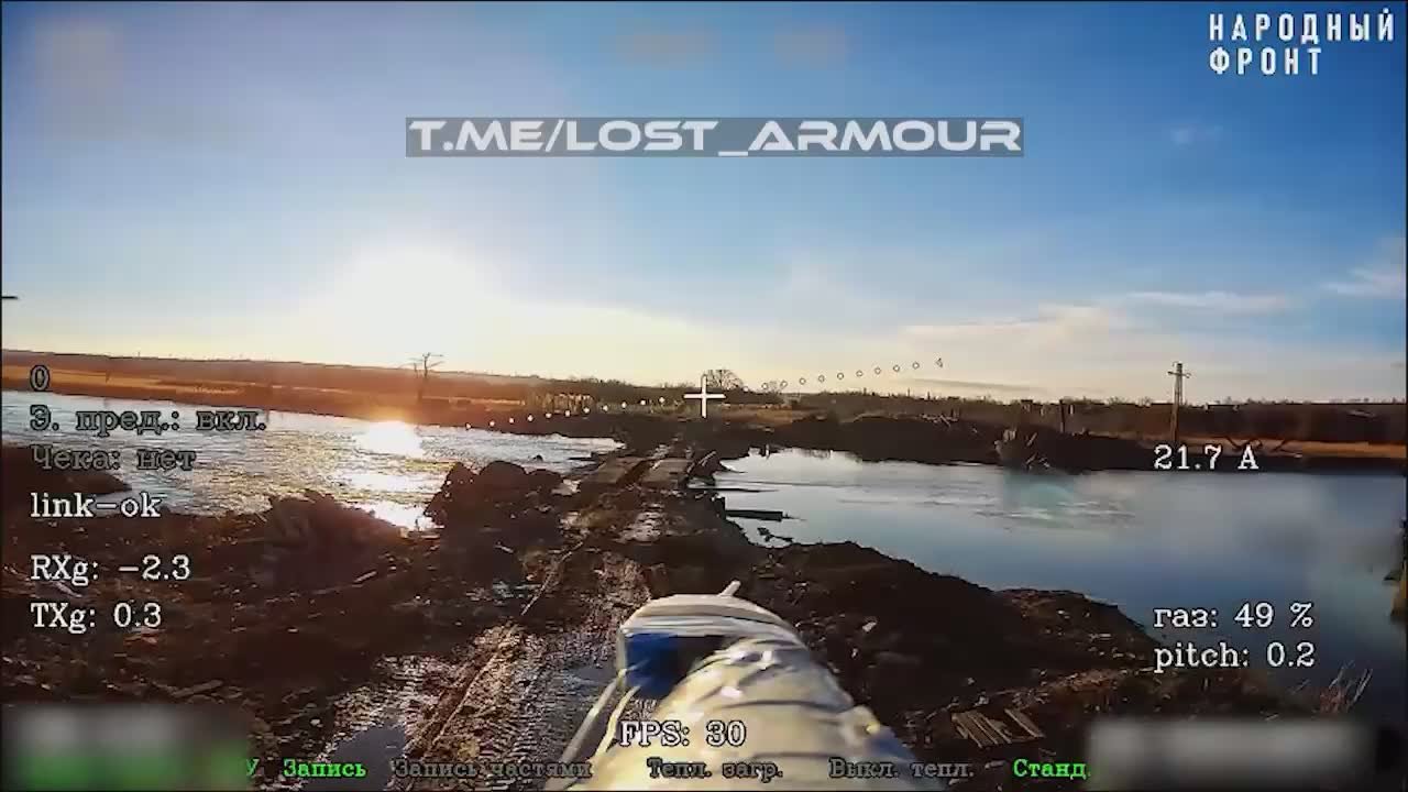 Уничтожение дроном на оптоволокне украинского М113 на переправе через реку Оскол на Купянском направлении