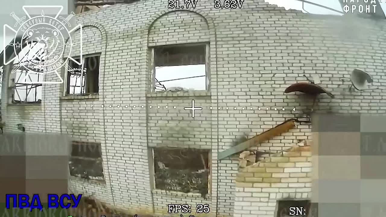 Применение высокоточной ракеты РСЗО "Торнадо-С" по обнаруженному дроноводами "Северян" скоплению всушников в полуразрушенном здании в селе Прилипка к западу от Волчанска