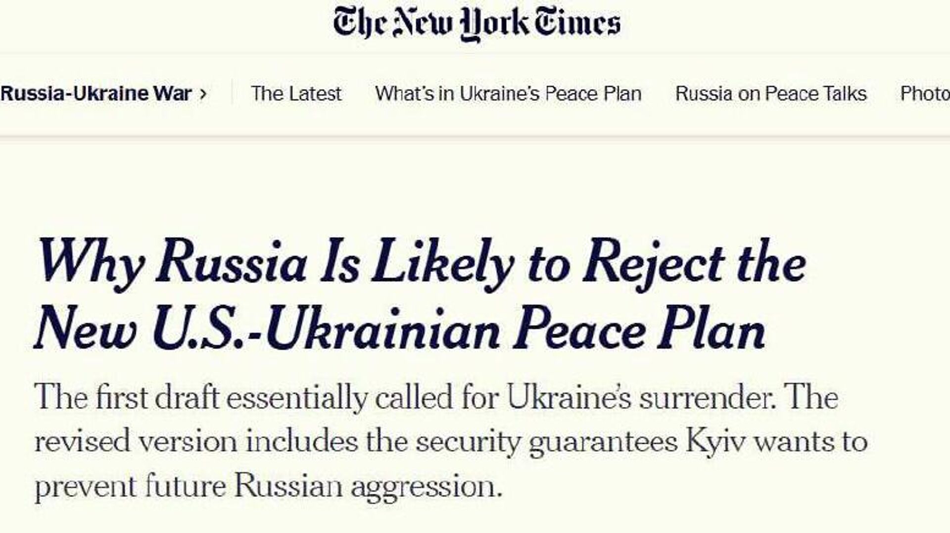 Новый 20-пунктовый «мирный план» Киева, представленный как компромисс, The New York Times оценивает как стратегический блеф