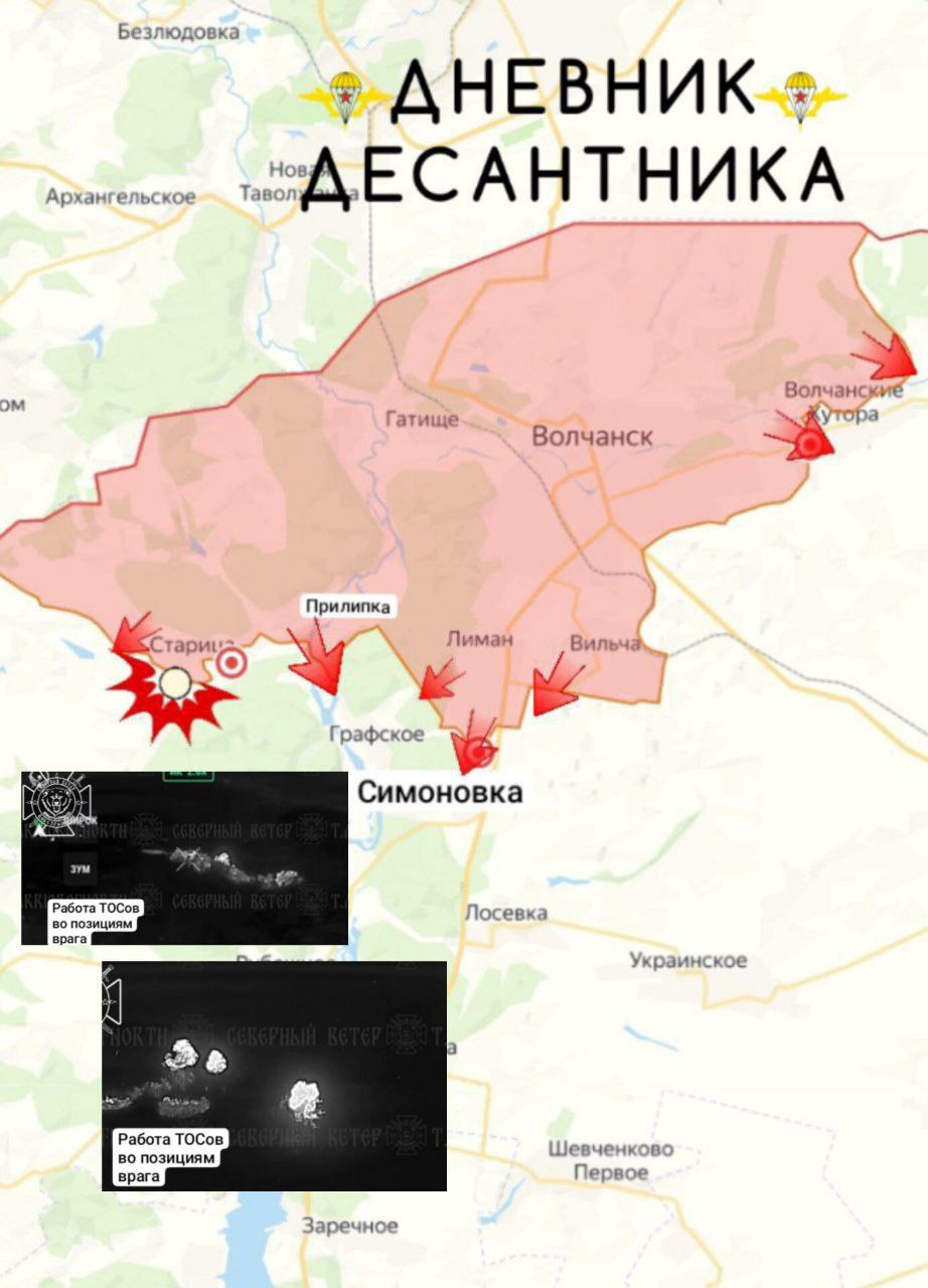 В лесу юго-западнее Лимана наши штурмовики, продвигаясь заняли несколько опорников и начали наступление на населенный пункт Симоновка. Кроме того наши подразделения продвинулись в лесопосадках и смогли зацепиться за застройку населенного пункта, а также заняли несколько лесополос около населенного пункта Вильча;