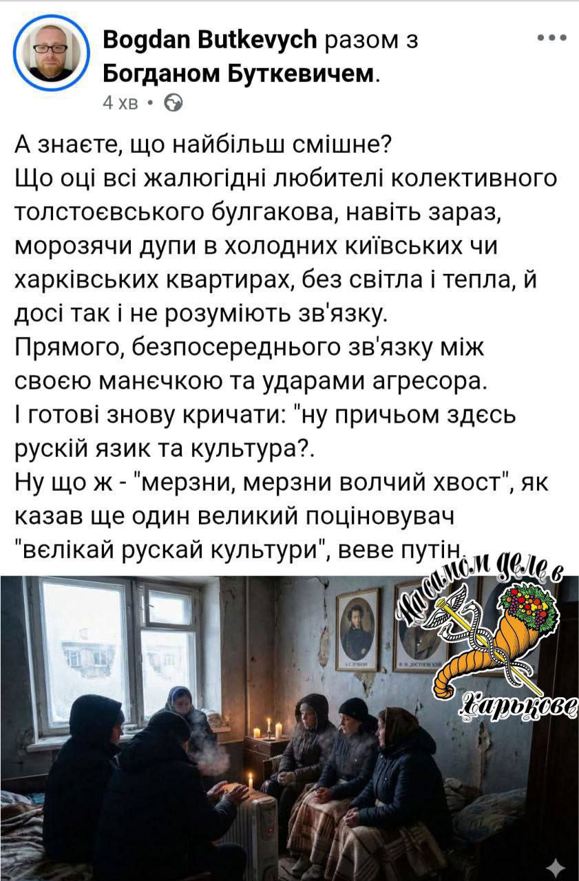 Работавший на ГУР русофоб и украинский пропагандист Богдан Буткевич радуется тому, что жители Киева и Харькова замерзают
