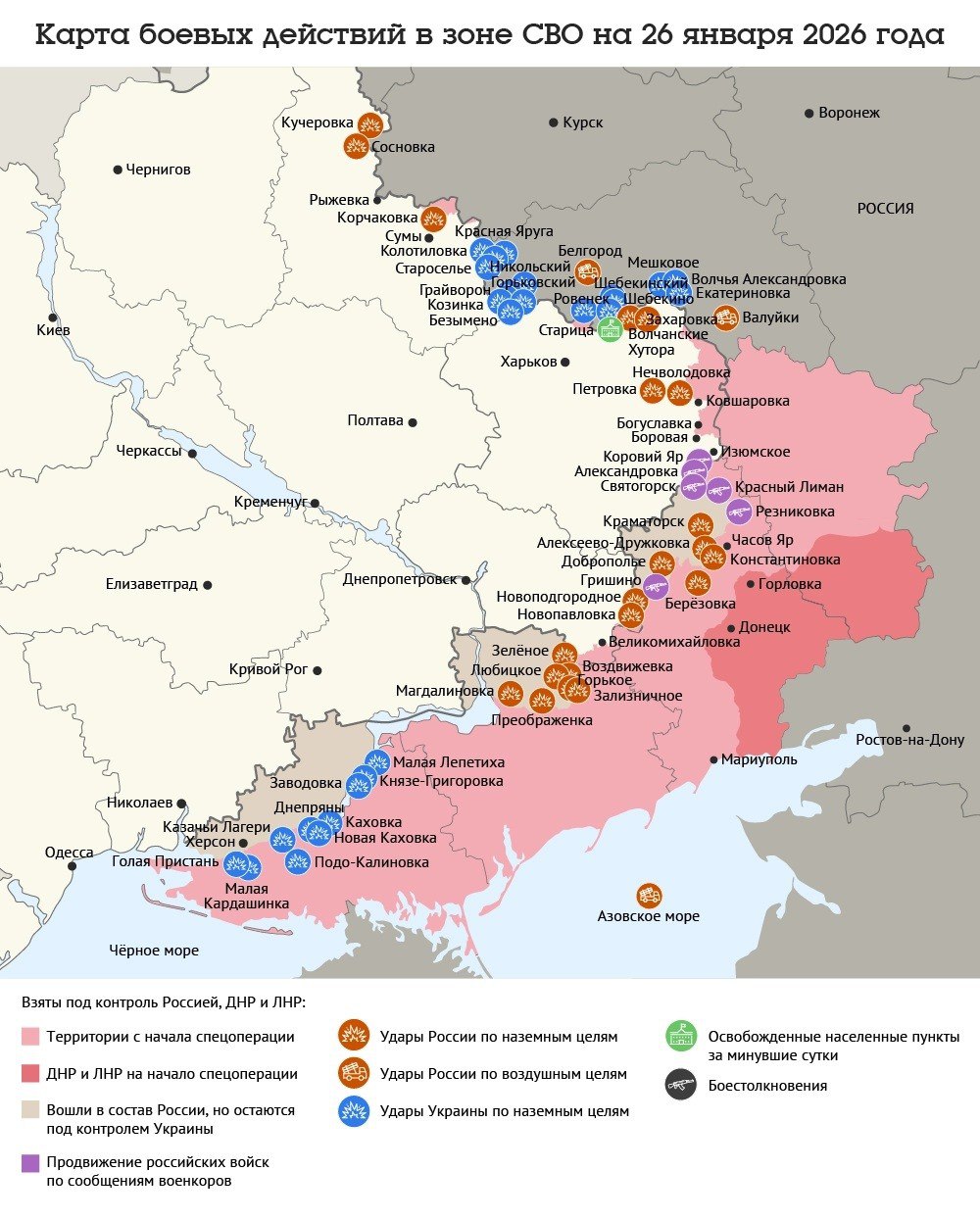 Карта боевых действий в зоне СВО на 26 января 2026 года