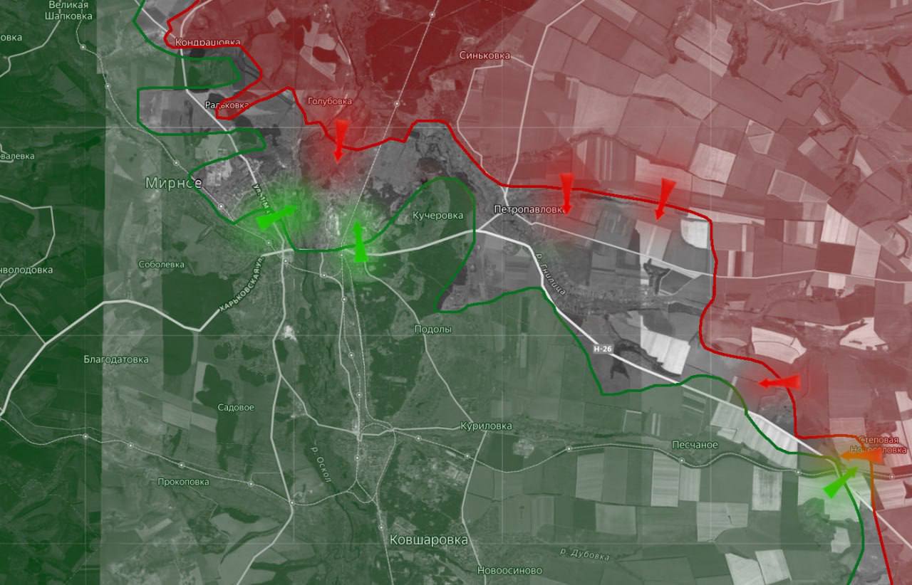 Большая часть соседней Петропавловки захвачена ВС РФ, присутствие ВСУ фиксируется в южной части населенного пункта.