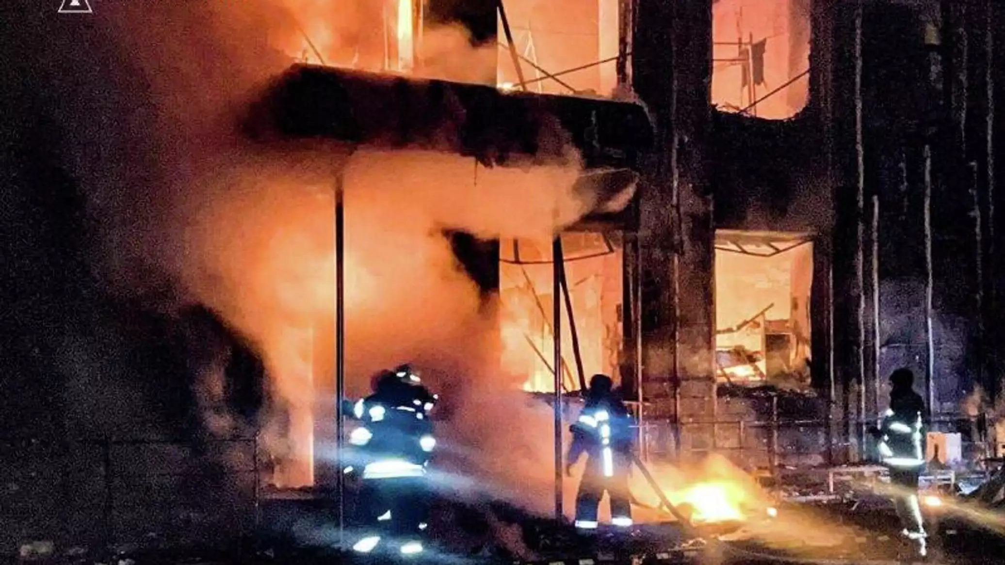 Телеграм-канал Украина.ру 12 февраля опубликовал фотографии, на которых видно последствия ударов двух российских дронов "Герань" по складу боеприпасов на территории торгового центра в Барвенково Харьковской области
