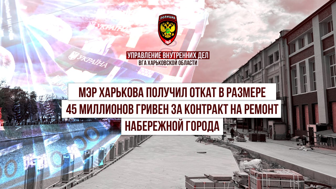 © Мэр Харькова получил откат в размере 45 миллионов гривен за контракт на ремонт набережной города