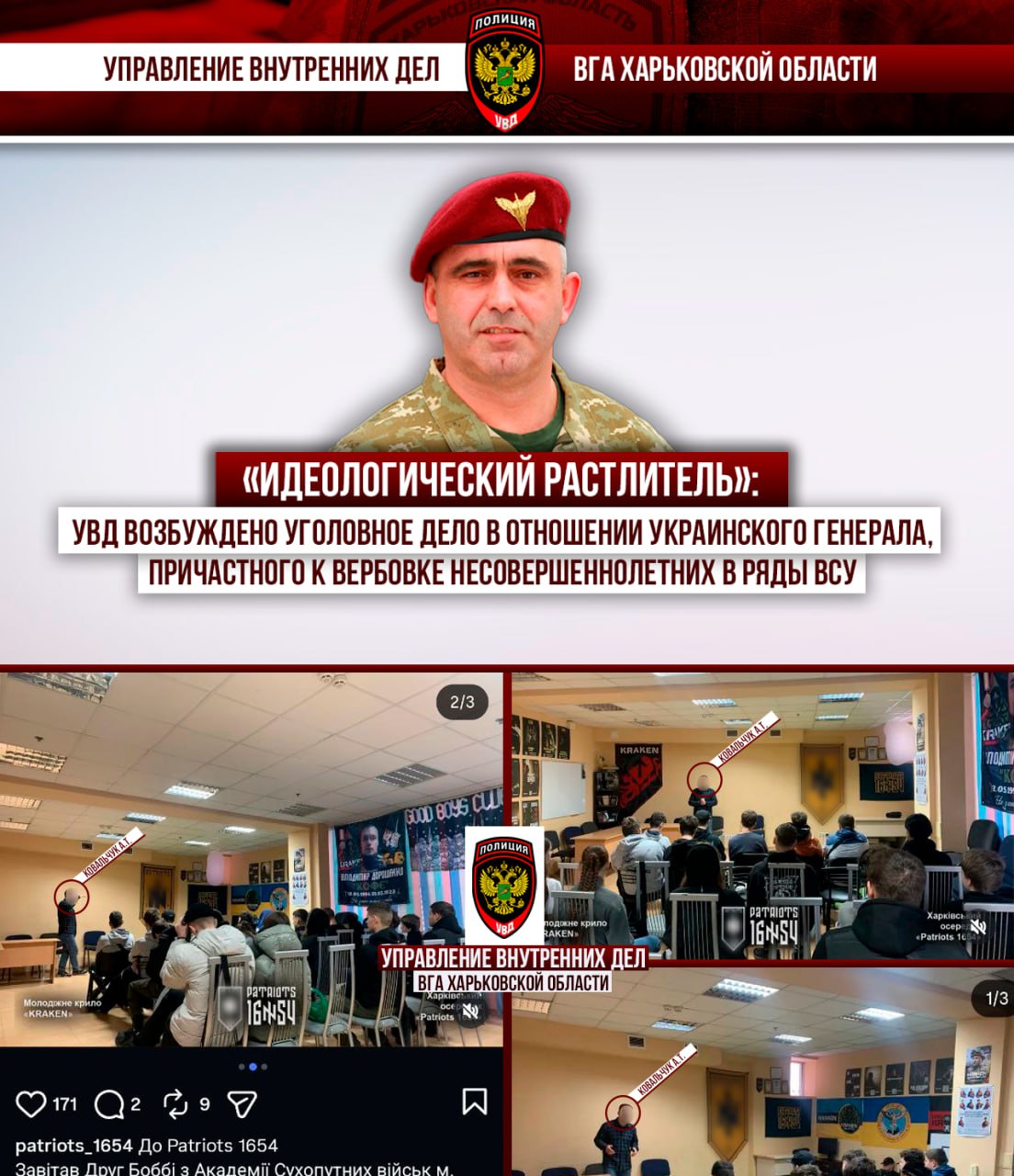 «Идеологический растлитель»: УВД возбуждено уголовное дело в отношении украинского генерала, причастного к вербовке несовершеннолетних в ряды ВСУ