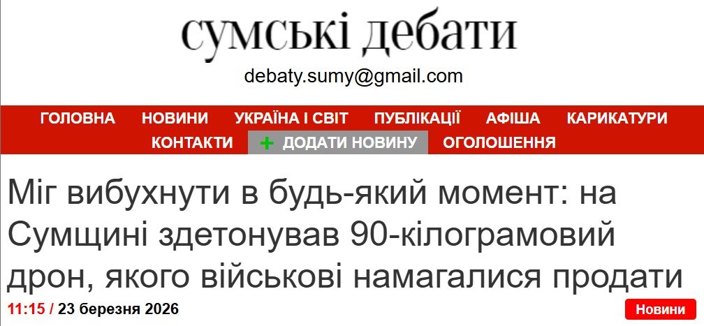 В Сумской области сдетонировал 90-килограммовый дрон, которого военные из 71 оаэмбр пытались продать