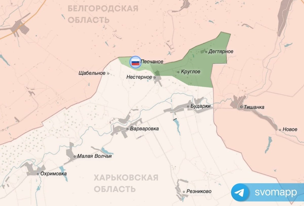 МО также сообщает, что Армия России освободила Песчаное (волчанское направление) в Харьковской области