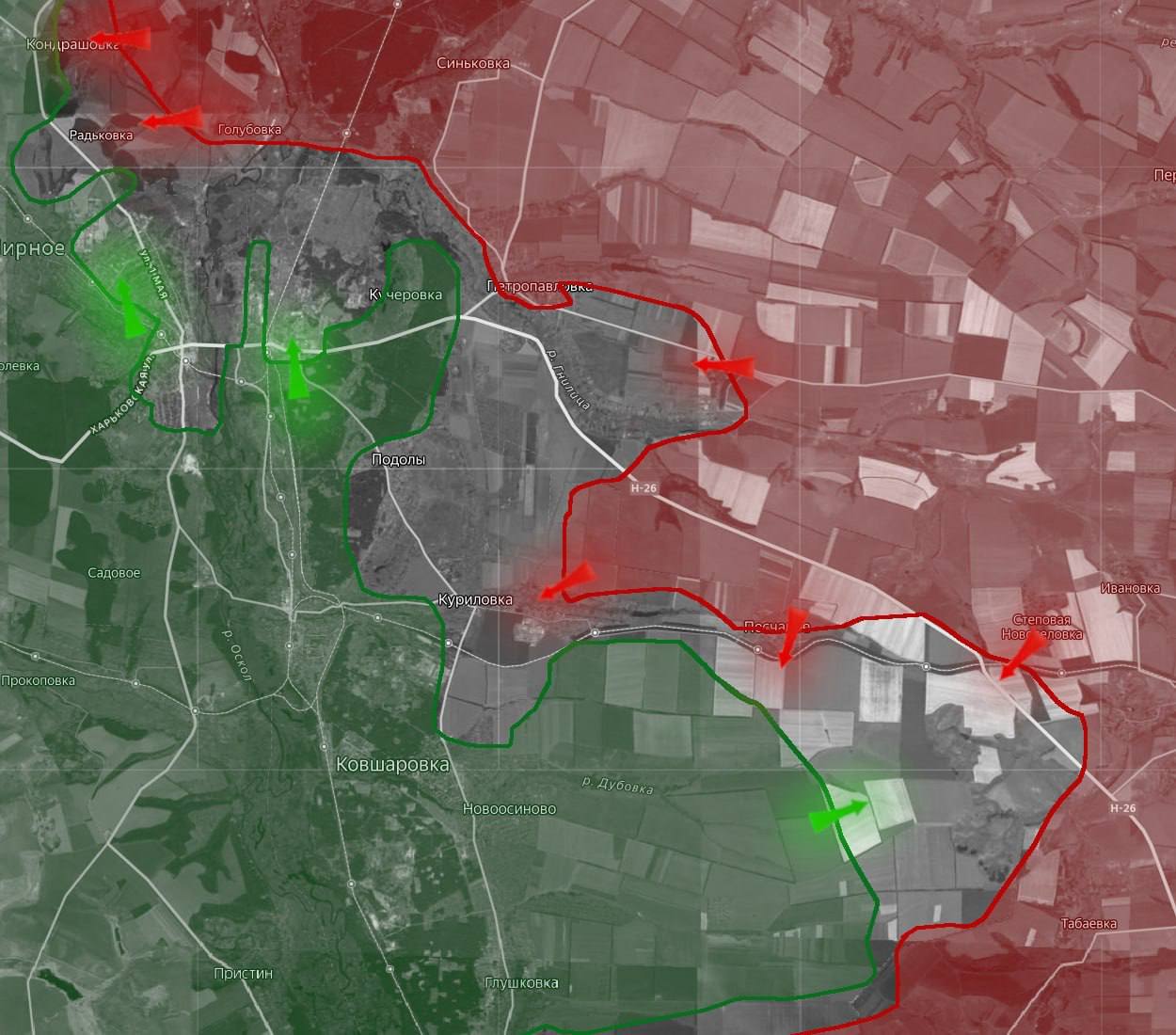«На Купянском направлении российские войска продвинулись восточнее Петропавловки. Также продвижение ВС РФ фиксируется к восточной части Купянск-Узлового».