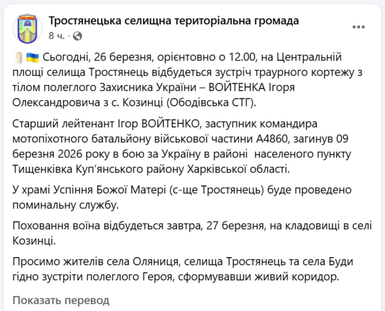 Группировка войск «Север»: Установлен контроль над н.п. Шевяковка (Харьковская обл.). Поражены 2 механизированные, мотопехотная бригады, тероборона и нацгвардия у Веселого, Рубежного, Верхней Писаревки и Великого Бурлука (Харьковская...
