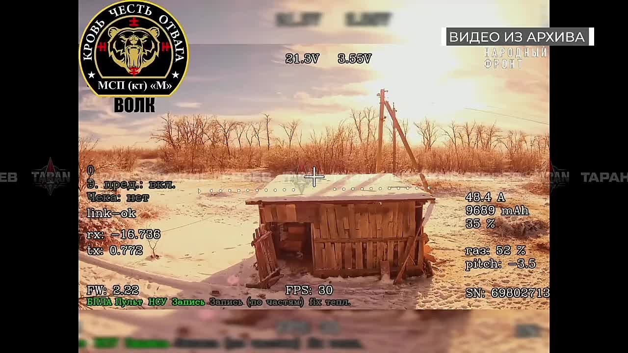 FPV - расчет «ВОЛК», точным попаданием уничтожает склад хранения продовольствия с помощью дрона на оптоволоконной связи.