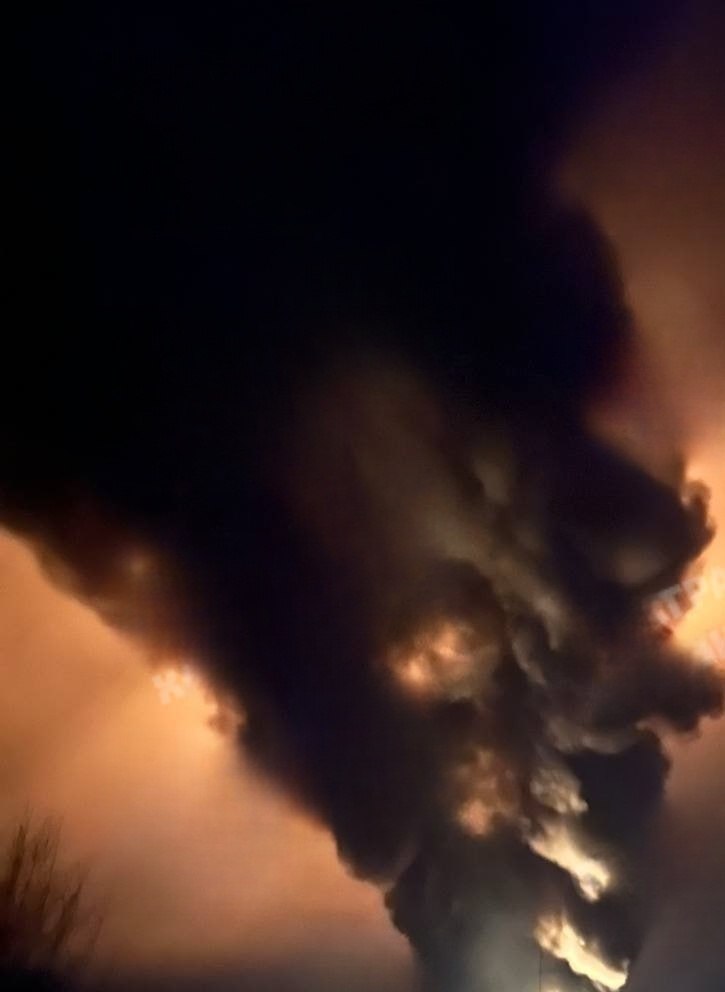 В районе Мерефы Харьковской области после прилёта "Герани" возник сильнейший пожар, который видно за несколько километров.