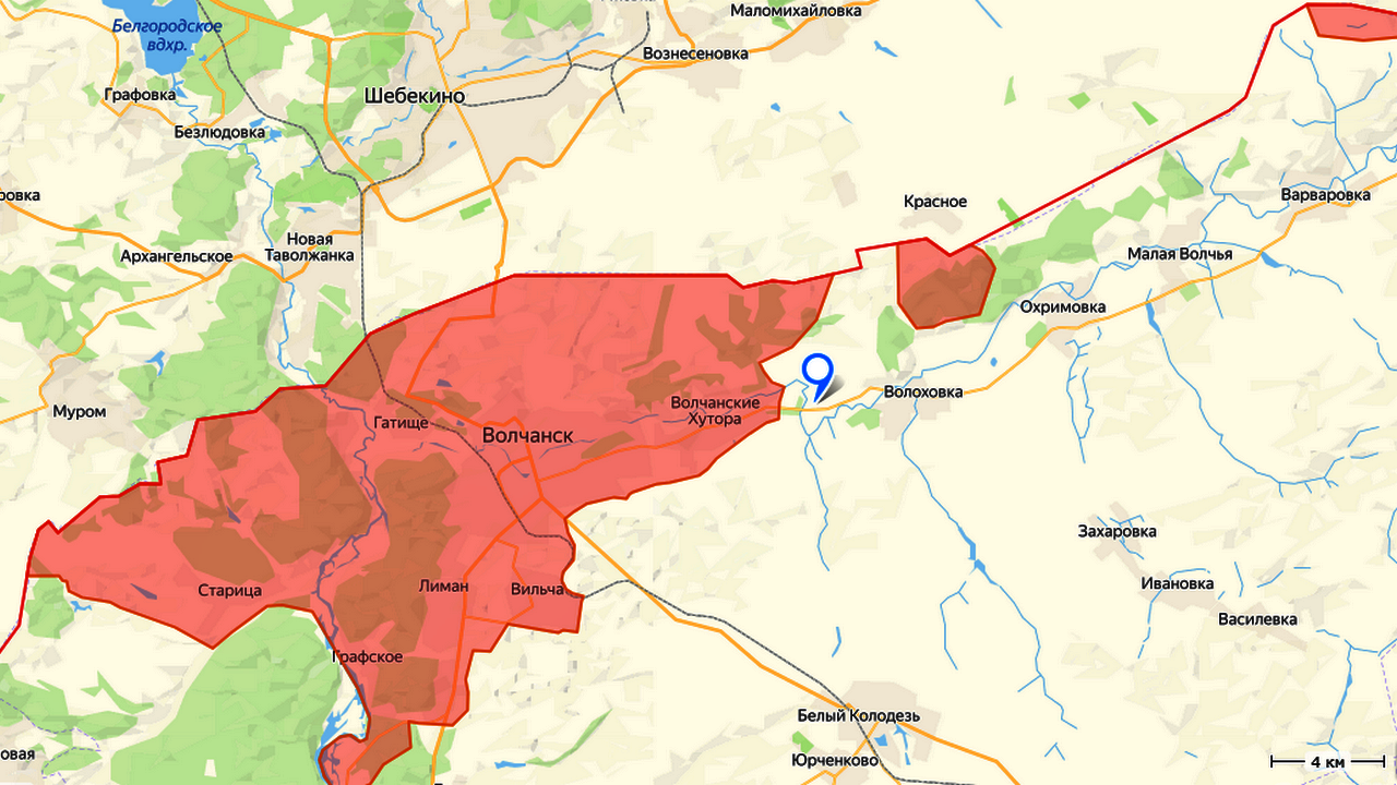 Населённый пункт Зыбино на карте Специальной военной операции (с) LostArmour.infoРоссийские военные уже ведут бои в соседних населённых пунктах, сообщает «Северный ветер». Вероятно, имеются в виду Покаляное и Волоховка на южном берегу реки Волчьей, а также Бочково на северном берегу этой реки к востоку от освобождённого Зыбино.