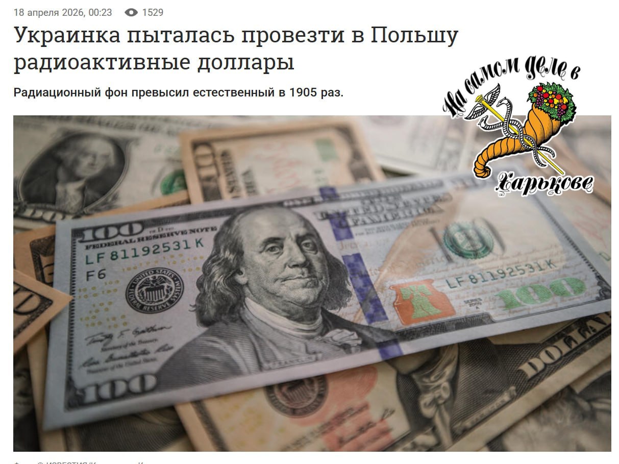 В середине апреля на границе с Польшей произошёл необычный инцидент. Сотрудники пограничной службы в Медыке остановили 54-летнюю украинку, у которой при себе было почти 10 тысяч долларов. Причиной послужила одна купюра достоинством 100 долларов — она фонила так сильно, что приборы показали превышение естественного радиационного фона в 1905 раз. Как позже выяснили, источником излучения, скорее всего, оказался медицинский изотоп.