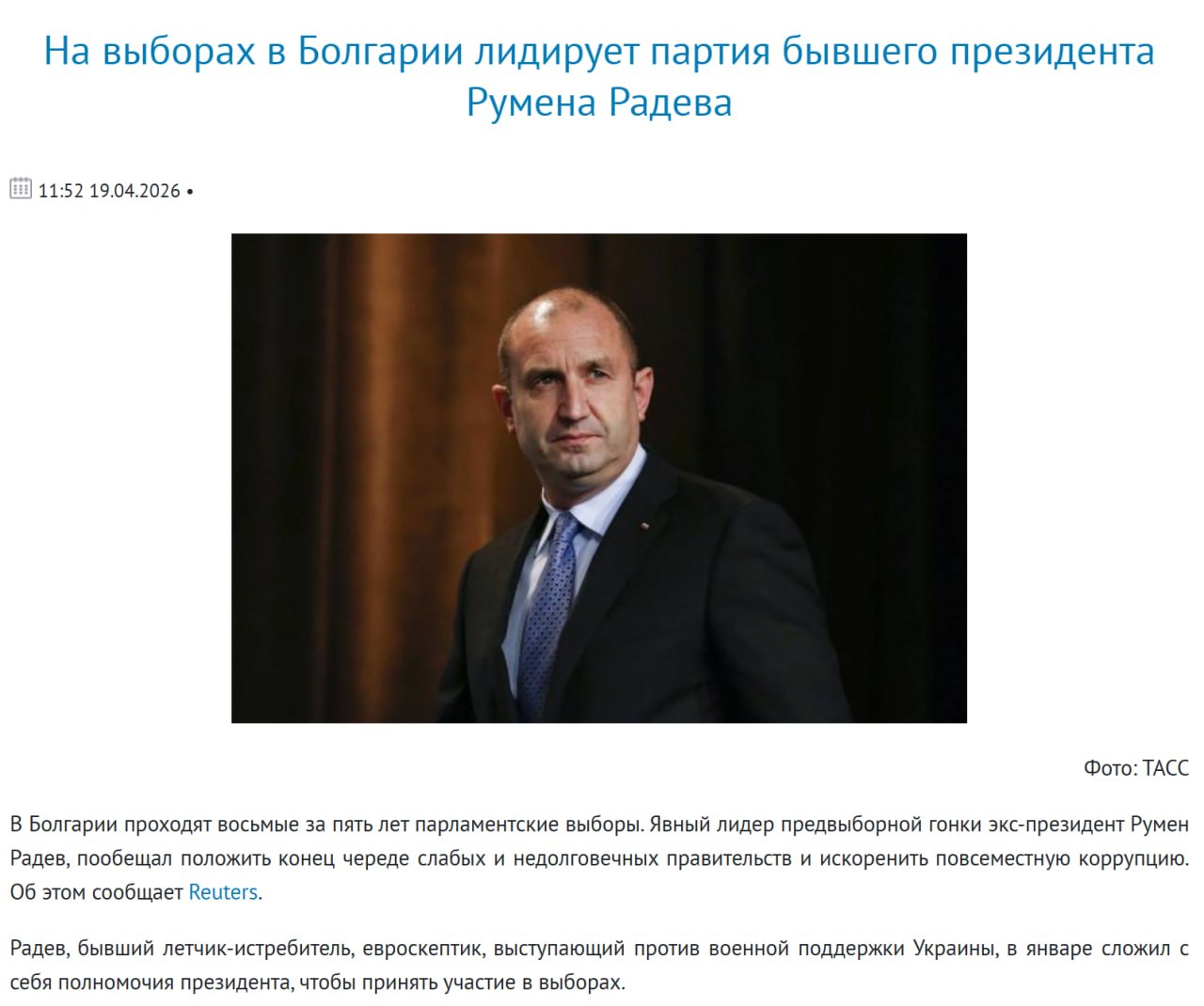 В Болгарии проходят досрочные парламентские выборы: лидирует партия экс-президента Радева, который выступает против помощи Украине, — Reuters