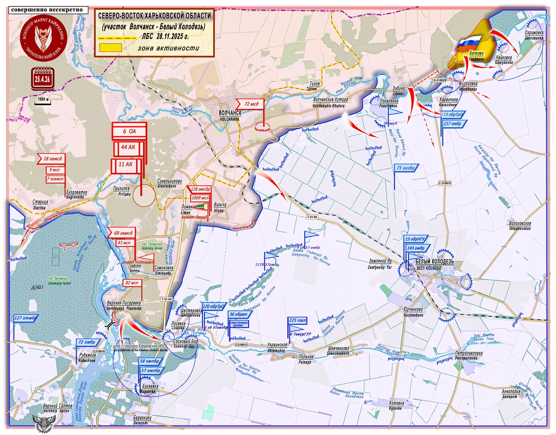 25 апреля был взят под контроль н.п. Бочково (50°1932 с. ш. 37°0839 в. д. - население 136 чел. в 2001 г.). К населенному пункту с севера примыкает большой лесной массив (ботанический заказник «Волчанский»). Этот район позволит ВС РФ концентрировать в лесном массиве подразделения второго эшелона, резервы, средства МТО, артиллерию и базовые районы групп БПЛА.