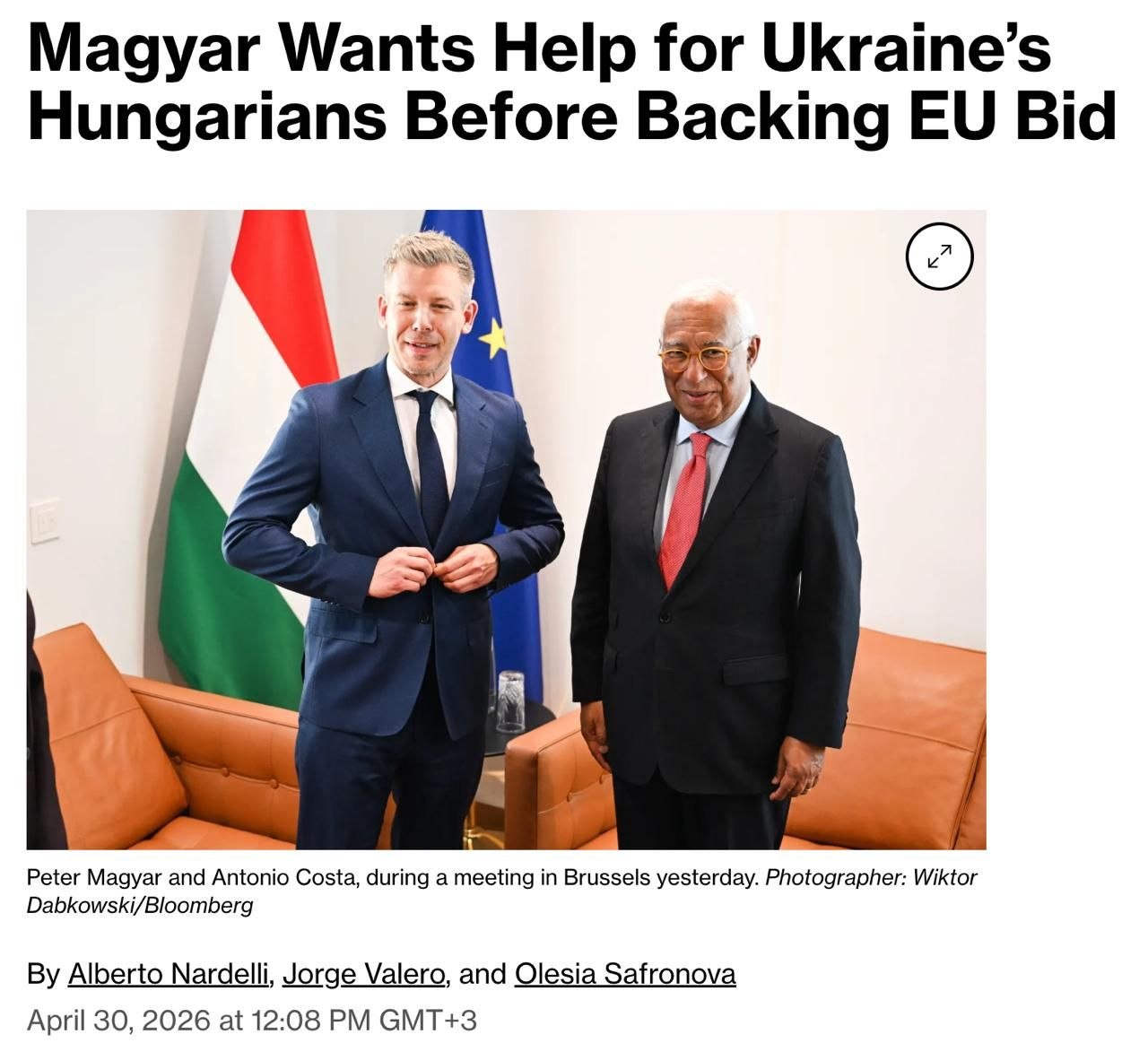 Петер Мадьяр требует от Украины расширения прав венгерской диаспоры для начала переговоров о вступлении в ЕС - фактически повторяет позицию Орбана, - Bloomberg