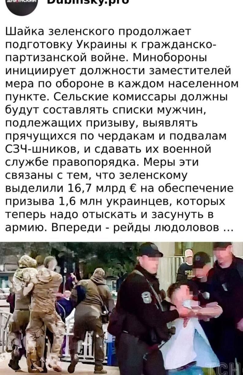 Украина, хроника необъявленной войны с ТЦК. АпрельЧем хуже у ВСУ положение дел на фронтах, тем агрессивнее ведут себя людоловы ТЦК, стремящиеся набрать на улицах как можно больше пушечного мяса – чтобы было кем затыкать дыры в обороне. Добровольцы в...