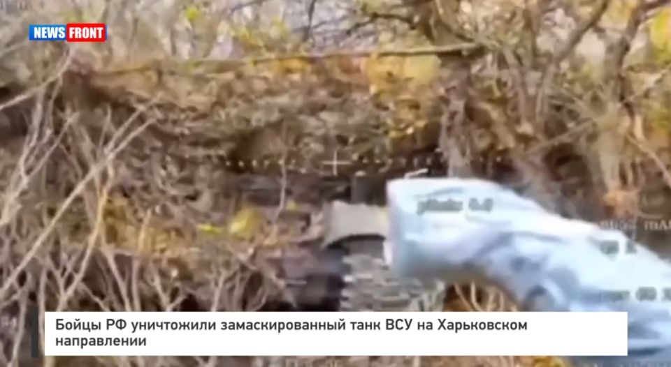 Российские военнослужащие Северной группировки войск уничтожили замаскированный танк противника на Харьковском направлении СВО. Кадры публикует Минобороны РФ.